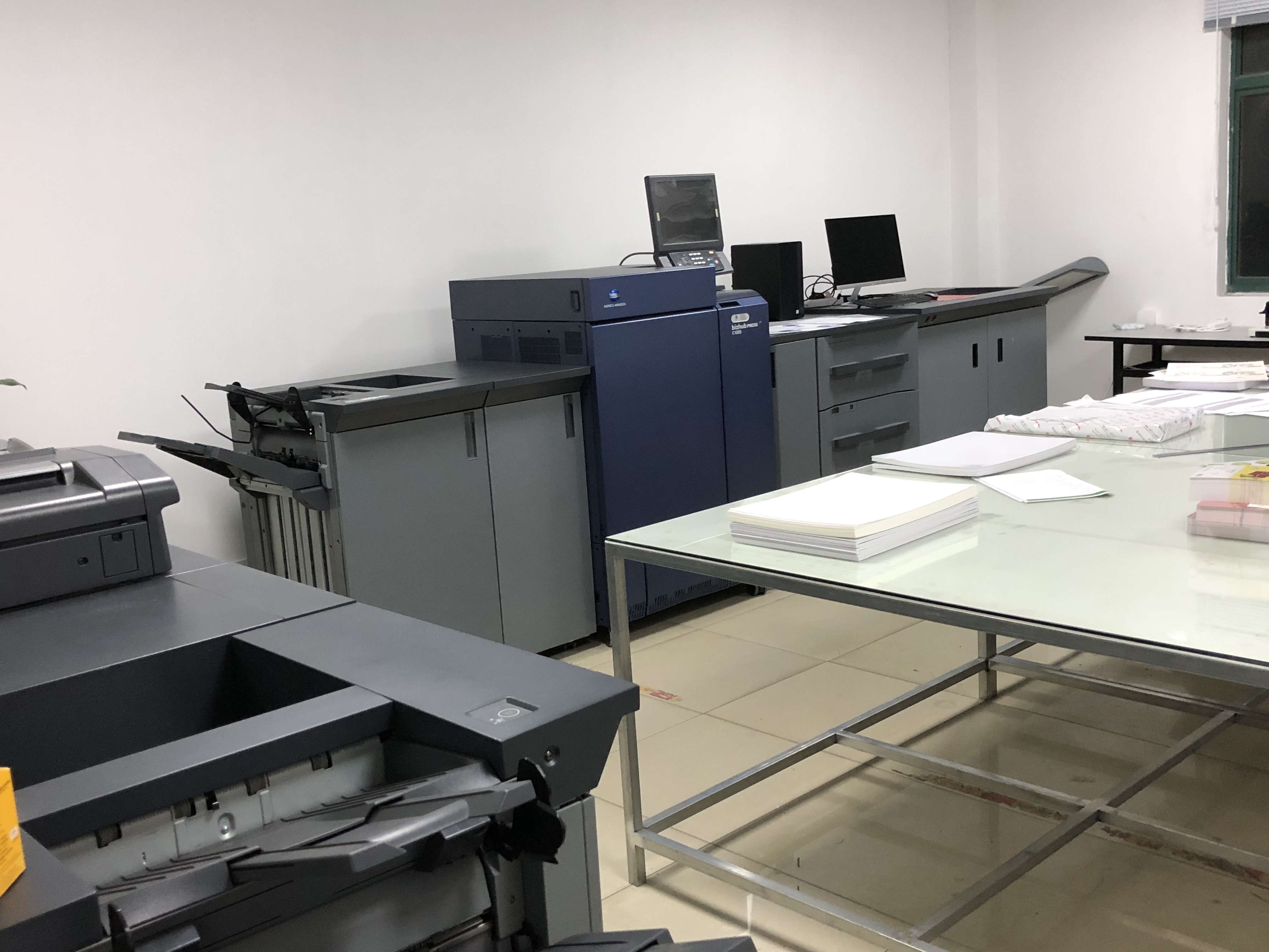 本厂现拥有海德堡对开四色印刷机、日本小森四开四色印刷机、对开单色海德堡印刷机、900型快速腹膜机及干湿两用腹膜机、压痕机、模切机、打码机、UV丝网印刷机、高平烫金机、有线胶装龙、骑钉龙、自动模切机等印刷后道设备。无论是客户的大批量印刷、还是数量较少的数码印刷、我们的设备在国内市场更新速度较快、出货速度在上海处于遥遥领先。